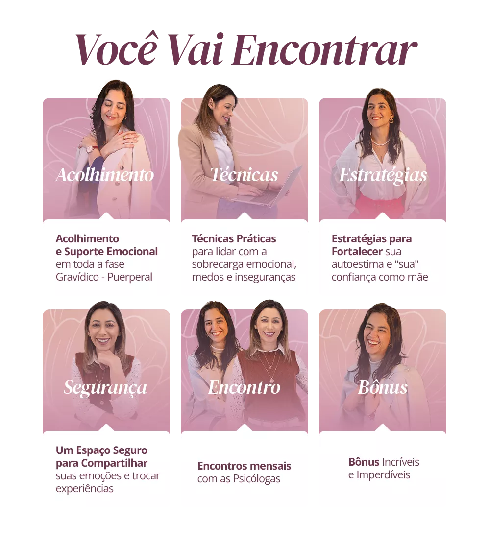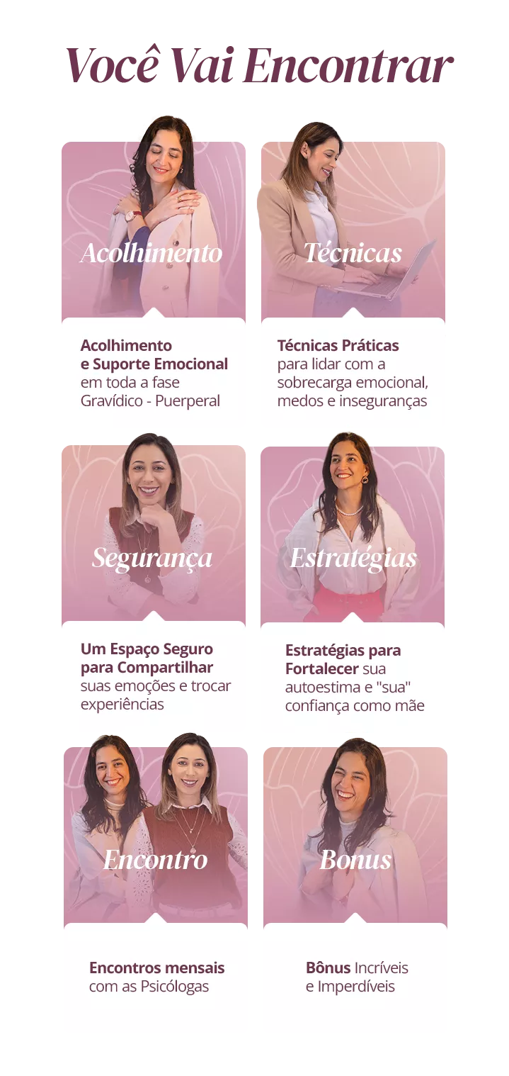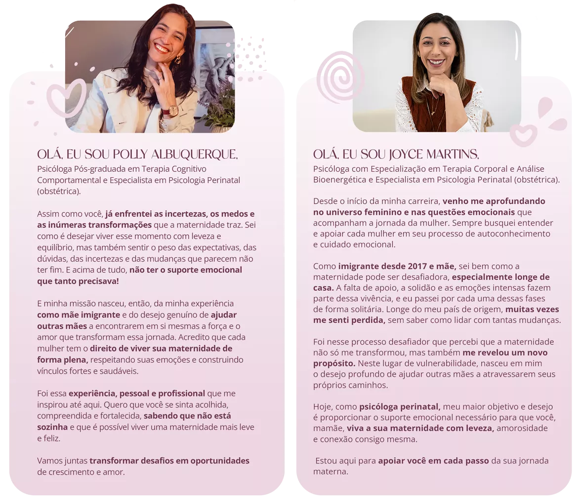 Elas compartilham saberes que Acolhem, Fortalecem e Transformam sua jornada na Maternidade.